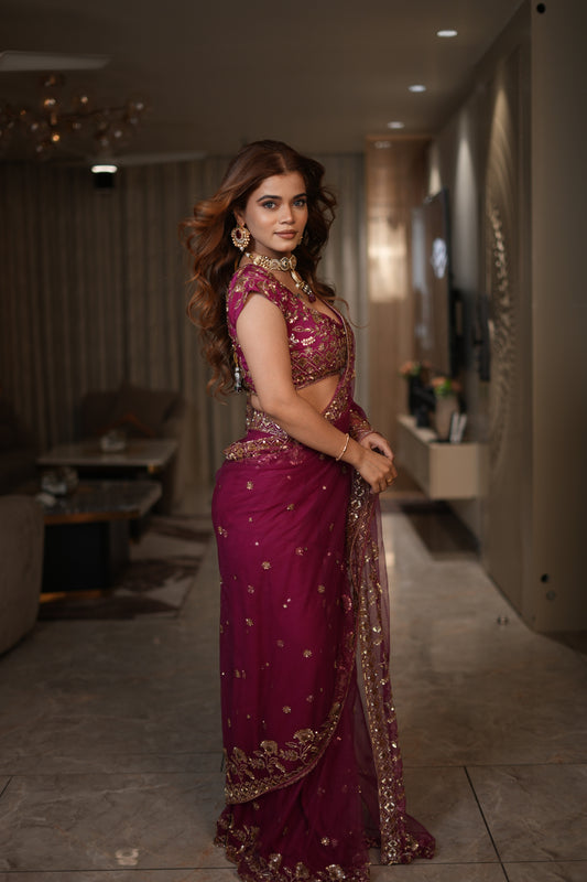 Blossom Magenta Pre-Draped Saree